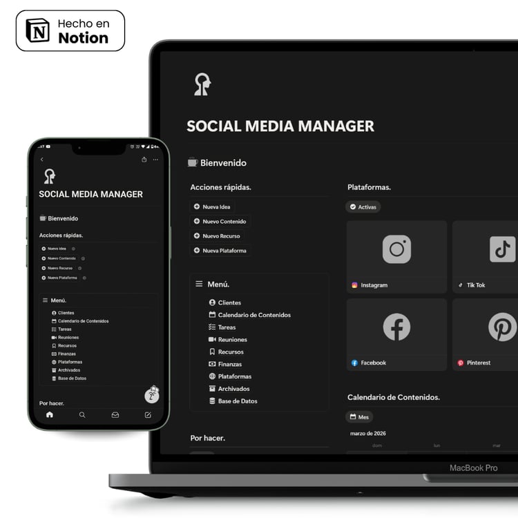 Notion es una app gratuita de organización (como Google Docs avanzado) que funciona en celular, tablet y computadora. Las plantillas están construidas sobre esta plataforma.