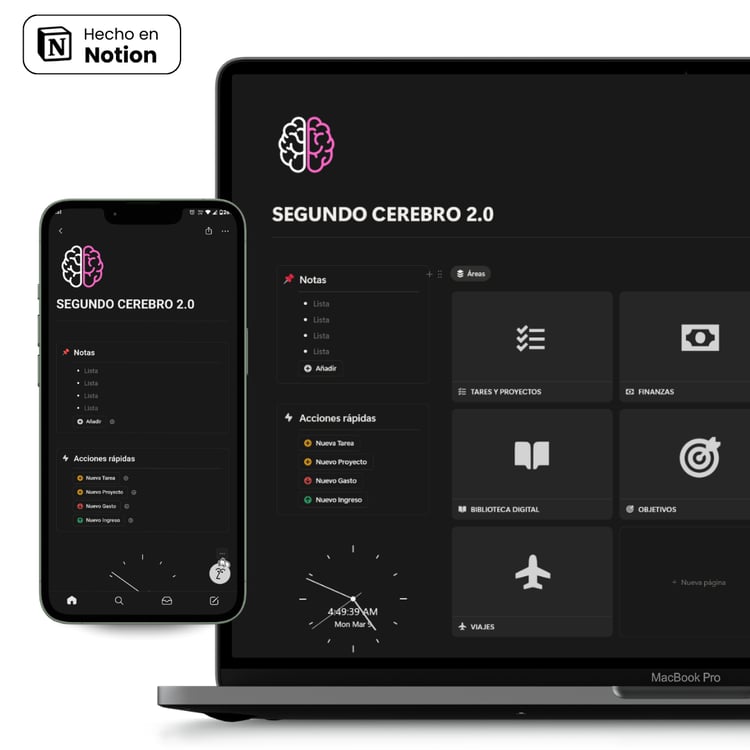 Aquí vas a encontrar una gran variedad de plantillas enfocadas en productividad y organización general, pensadas para que te saltes la curva de aprendizaje y dejes de perder tiempo construyendo un sistema desde cero. Al unir un diseño simple con una base estratégica, estas herramientas eliminan la carga mental de "recordar" para que puedas enfocarte 100% en actuar de forma profesional y efectiva.